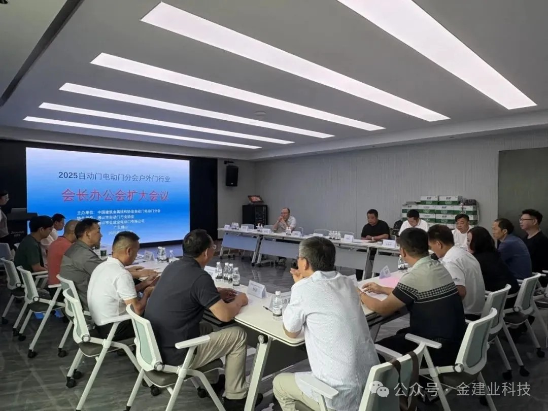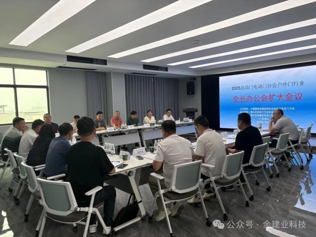 2025年7月10日,2025自动门电动门分会户外门行业会长办公会扩大会议在佛山金建业电动门有限公司成功举办。 自动门电动门分会副会长戴建国、自动门电动门分会副会长刘军、自动门电动门分会执行会长王颖和陈标明、佛山市自动门行业协会会长罗明辉等参与本次会议。作为承办单位,金建业携手行业同仁,聚焦户外门业新趋势,共探高质量发展路径。